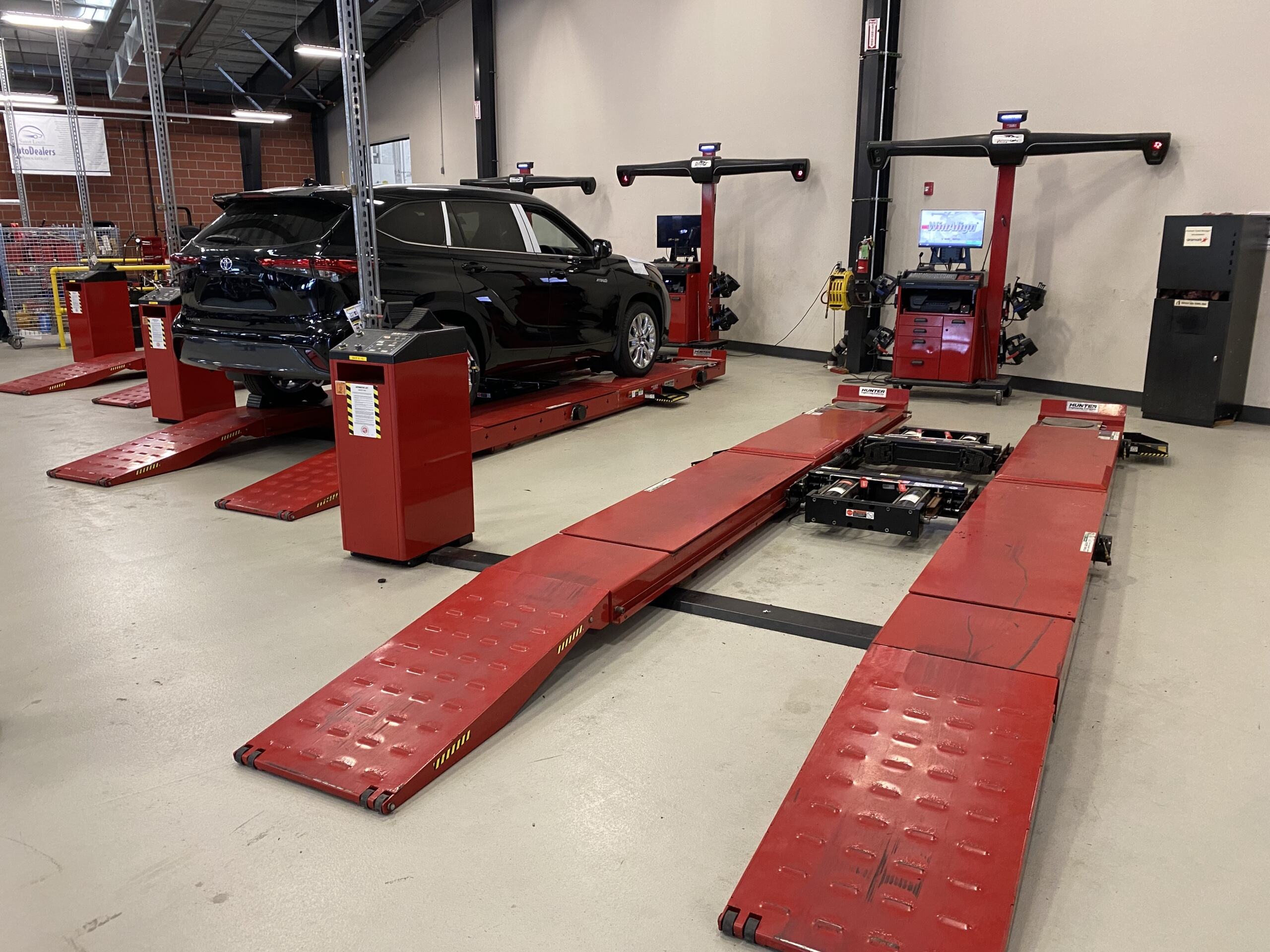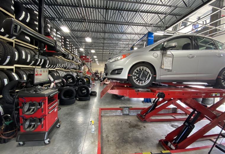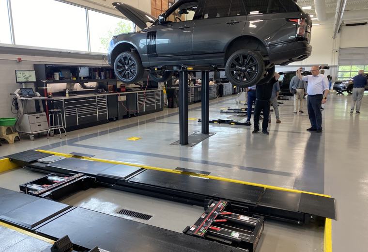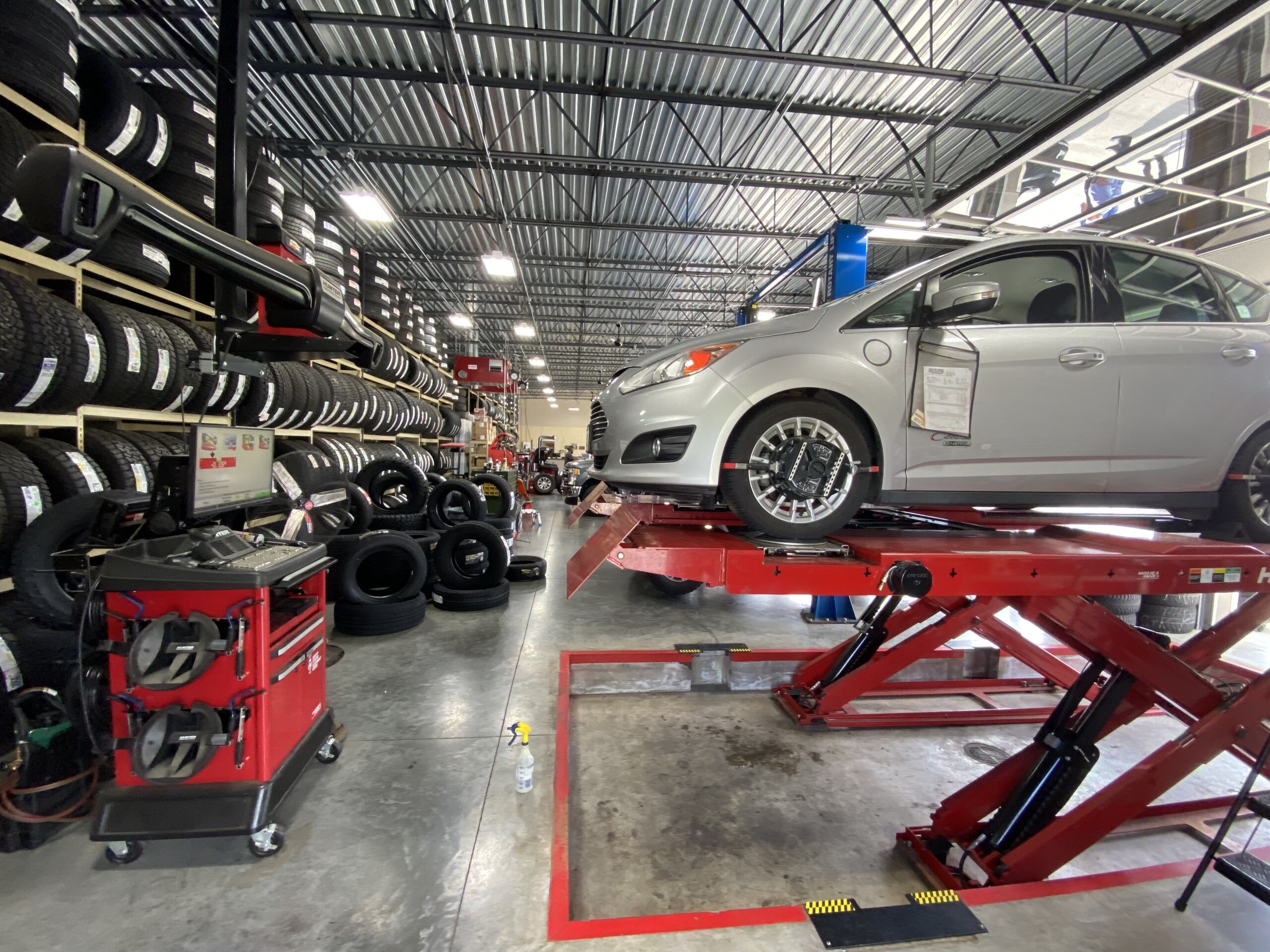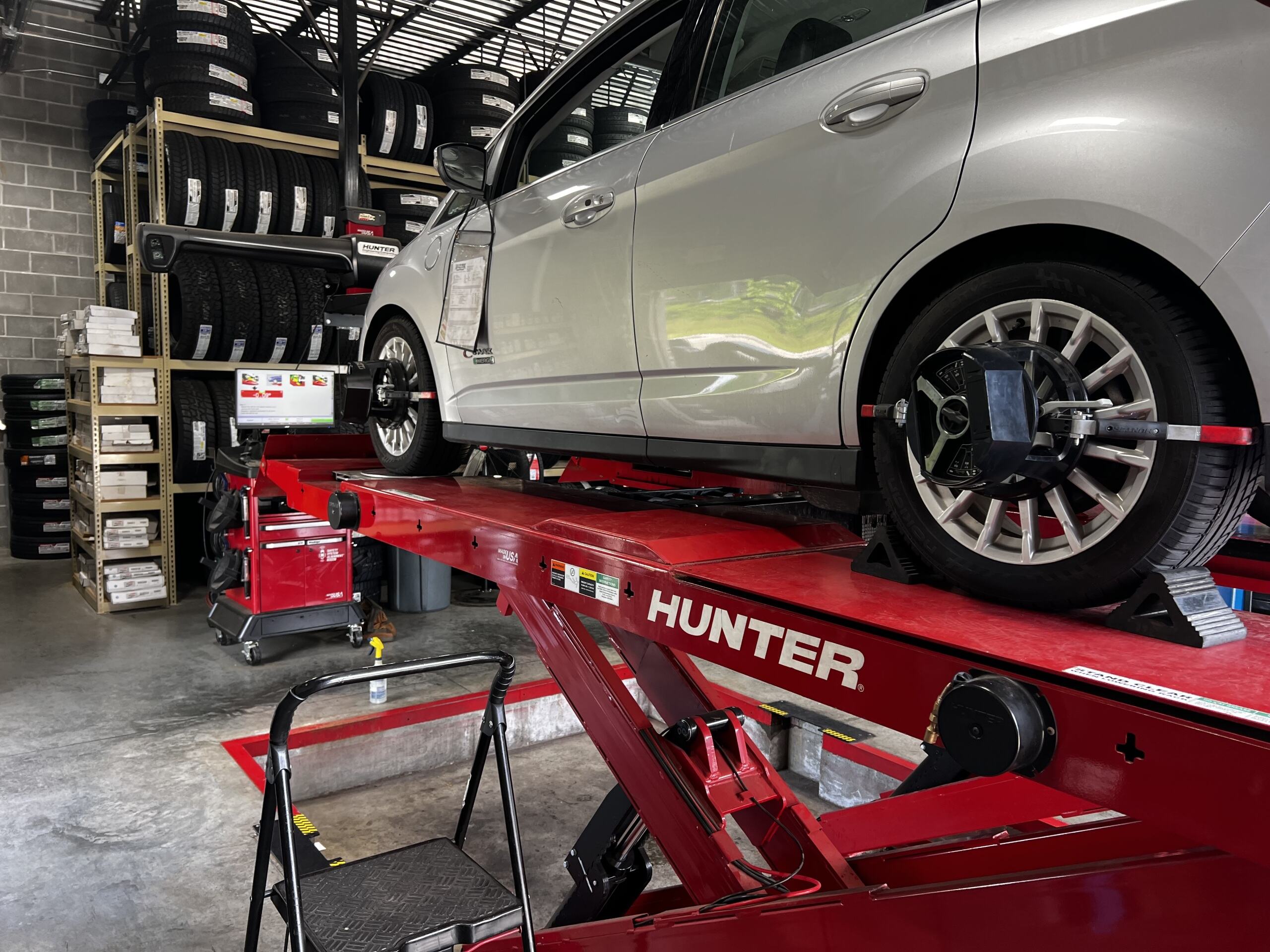 Zabudovaná inspekční linka Hunter Quick Check® Drive, měření geometrie Hunter Hawkeye Elite® s nůžkovým zvedákem Hunter RX doplňuje několik různých vyvažovaček a montážních strojů Hunter.