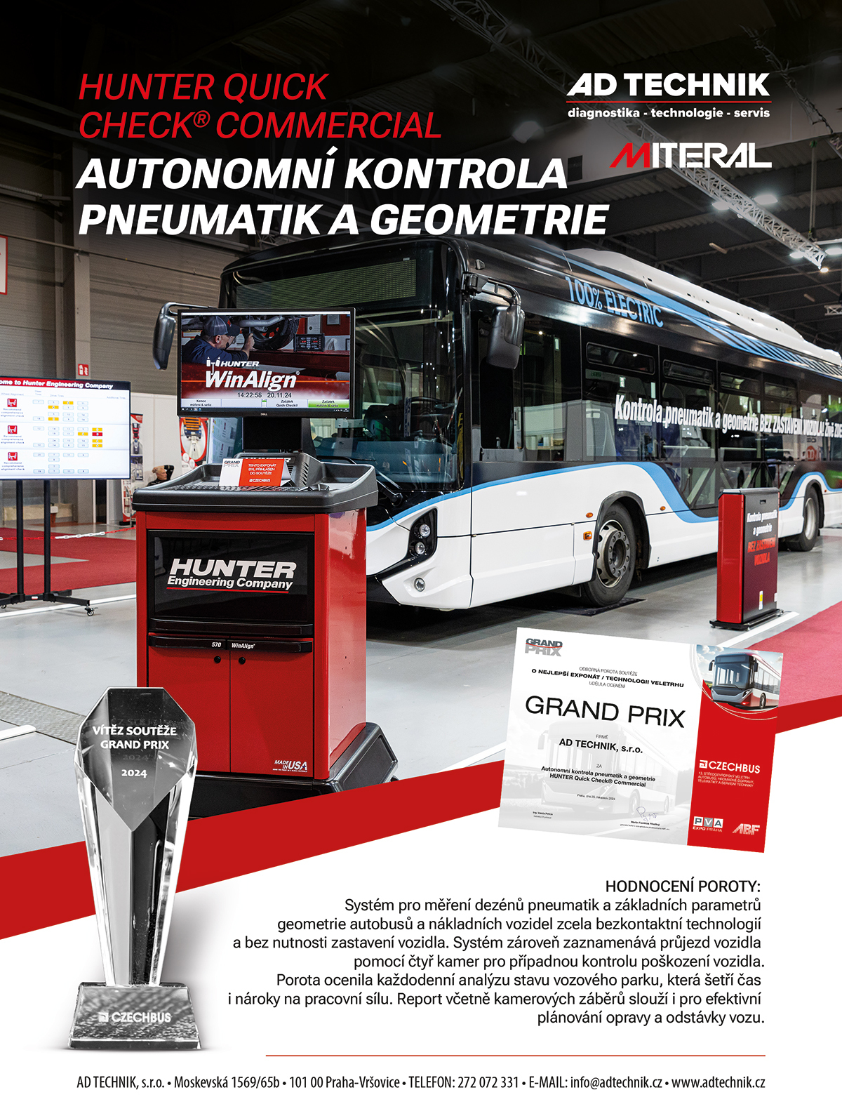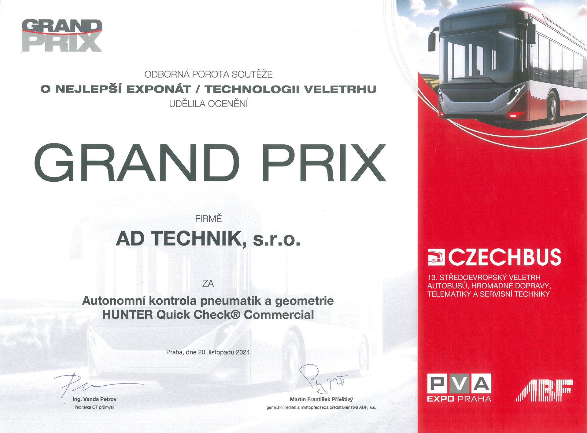 S téměř roční pravidelností se účastníme výstavy Czechbus na pražských Letňanech a v roce 2024 jsme s produktem Hunter Quick Check® Commercial vyhráli cenu Grand Prix za nejlepší exponát/technologii.