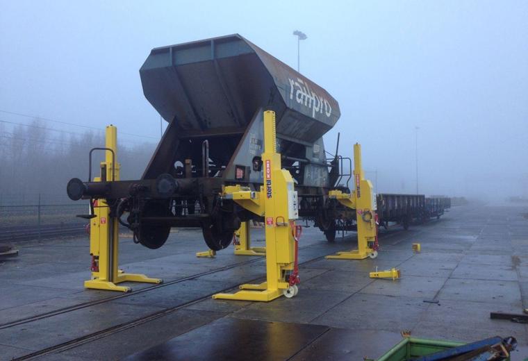 RF Wagonlift od Stertil-Koni je speciálně navržený a zkonstruovaný pro zvedání kolejových vozidel z podvozků nebo karoserií. Nosnost až 17.5 t.