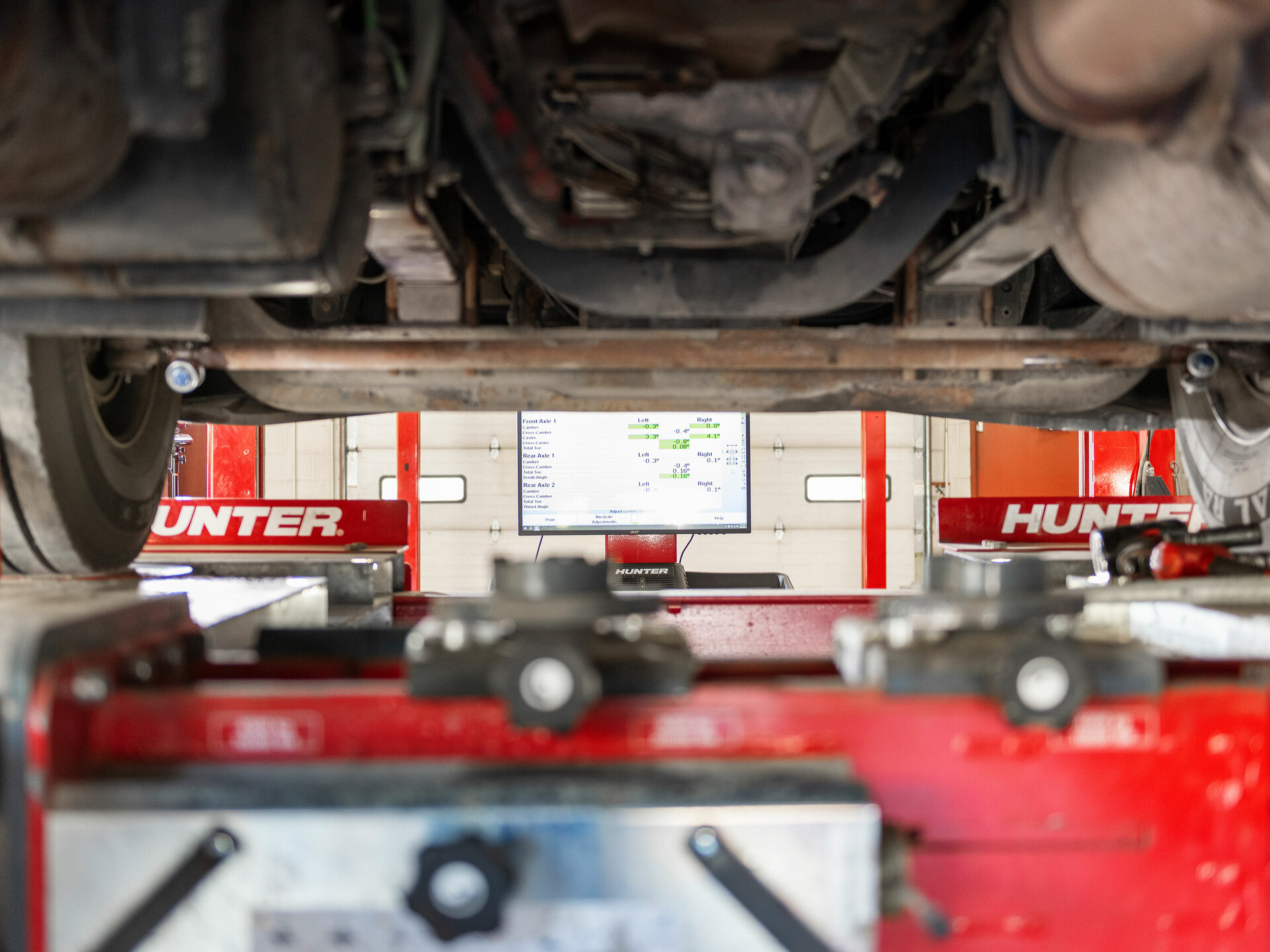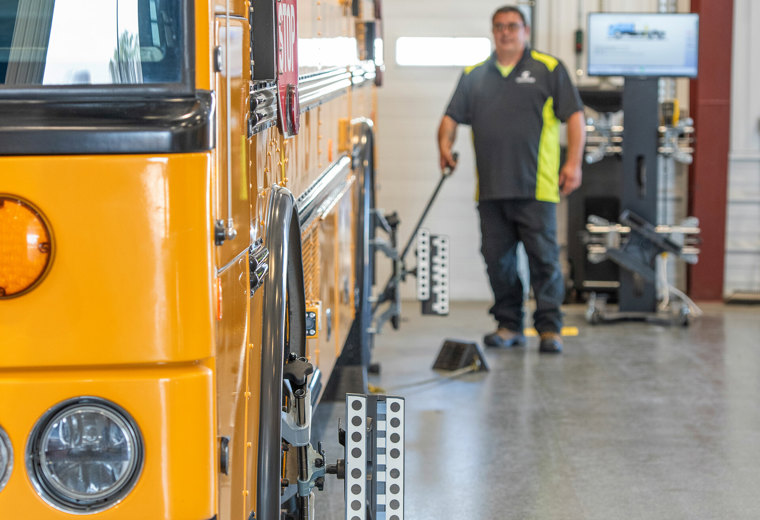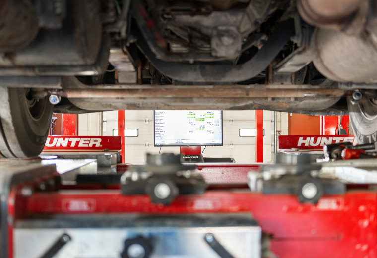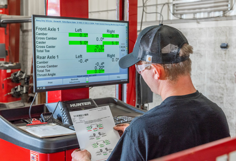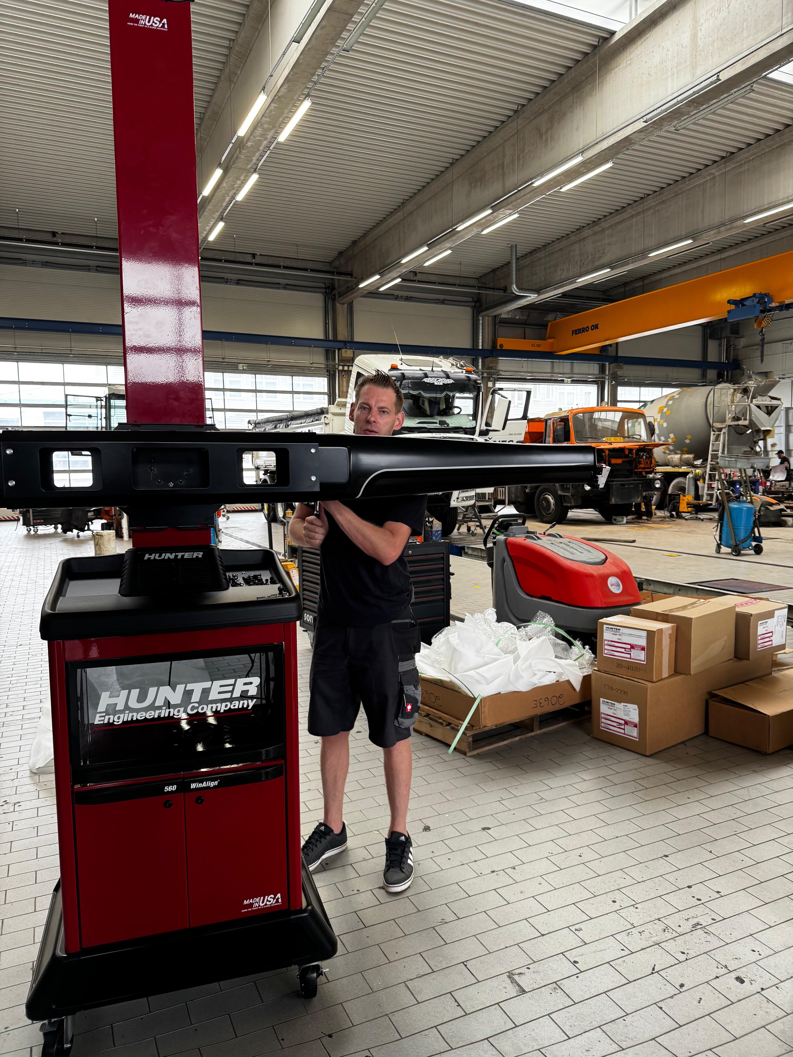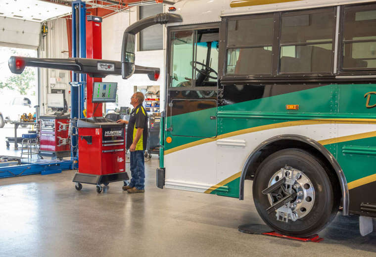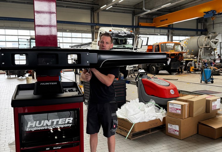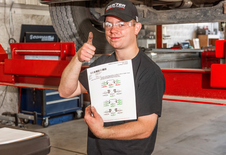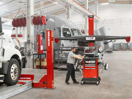 Rychlý a vysoce výkonný stroj pro měření geometrie s patentovanou kamerovou technologií Hunter určený pro těžké nákladní vozy, autobusy a středně těžká užitková vozidla a vozové parky.
