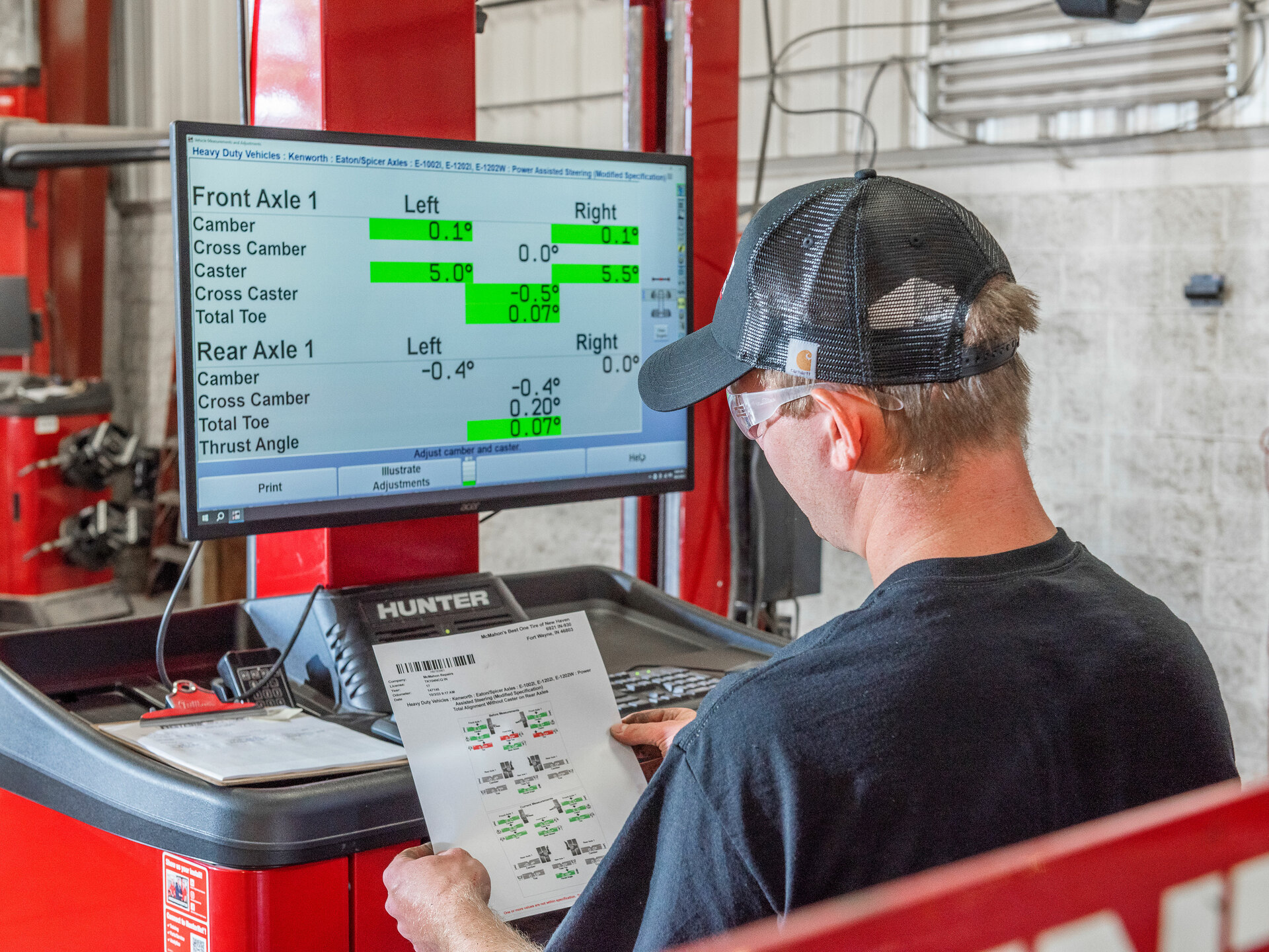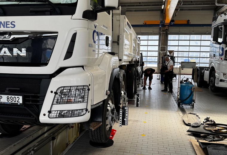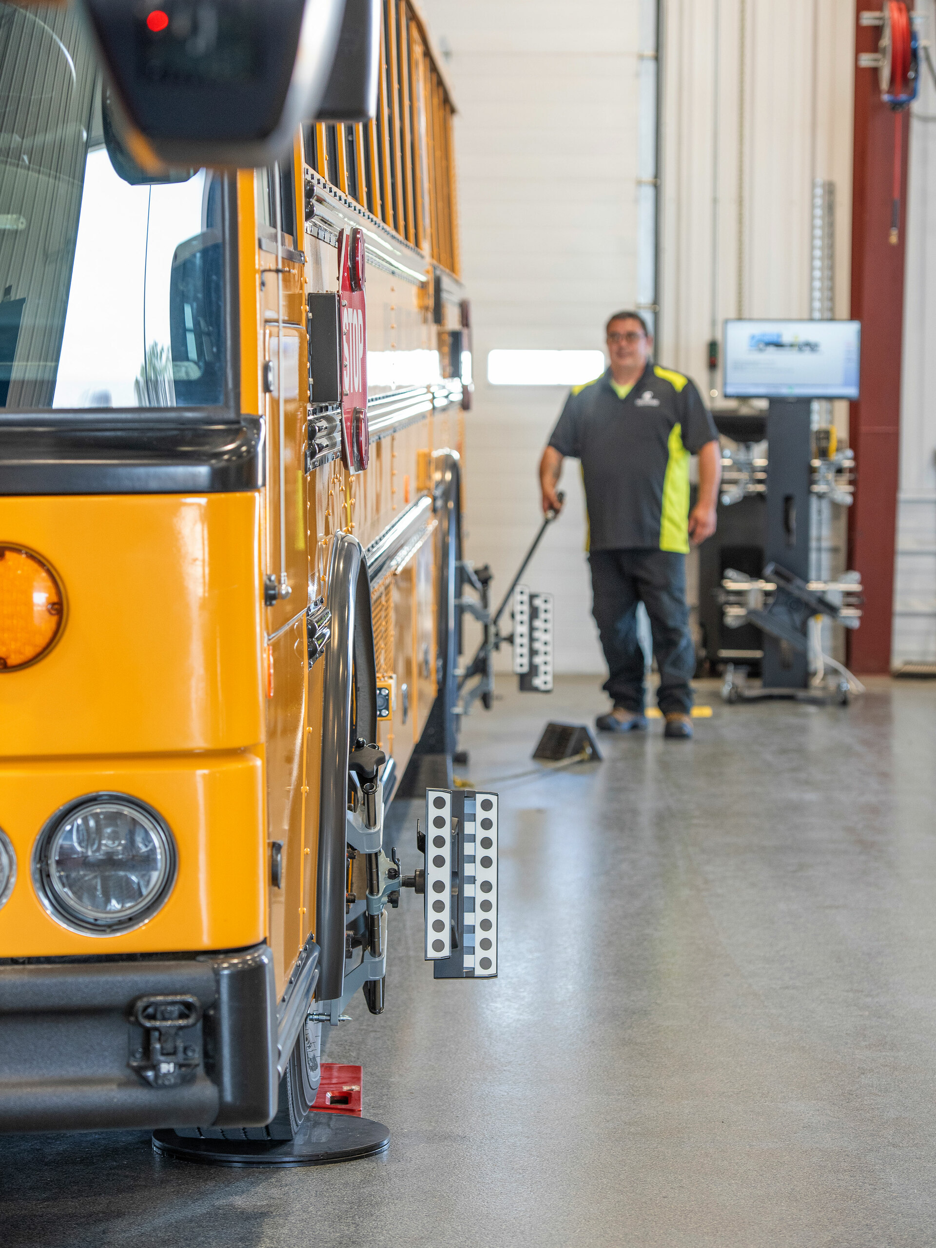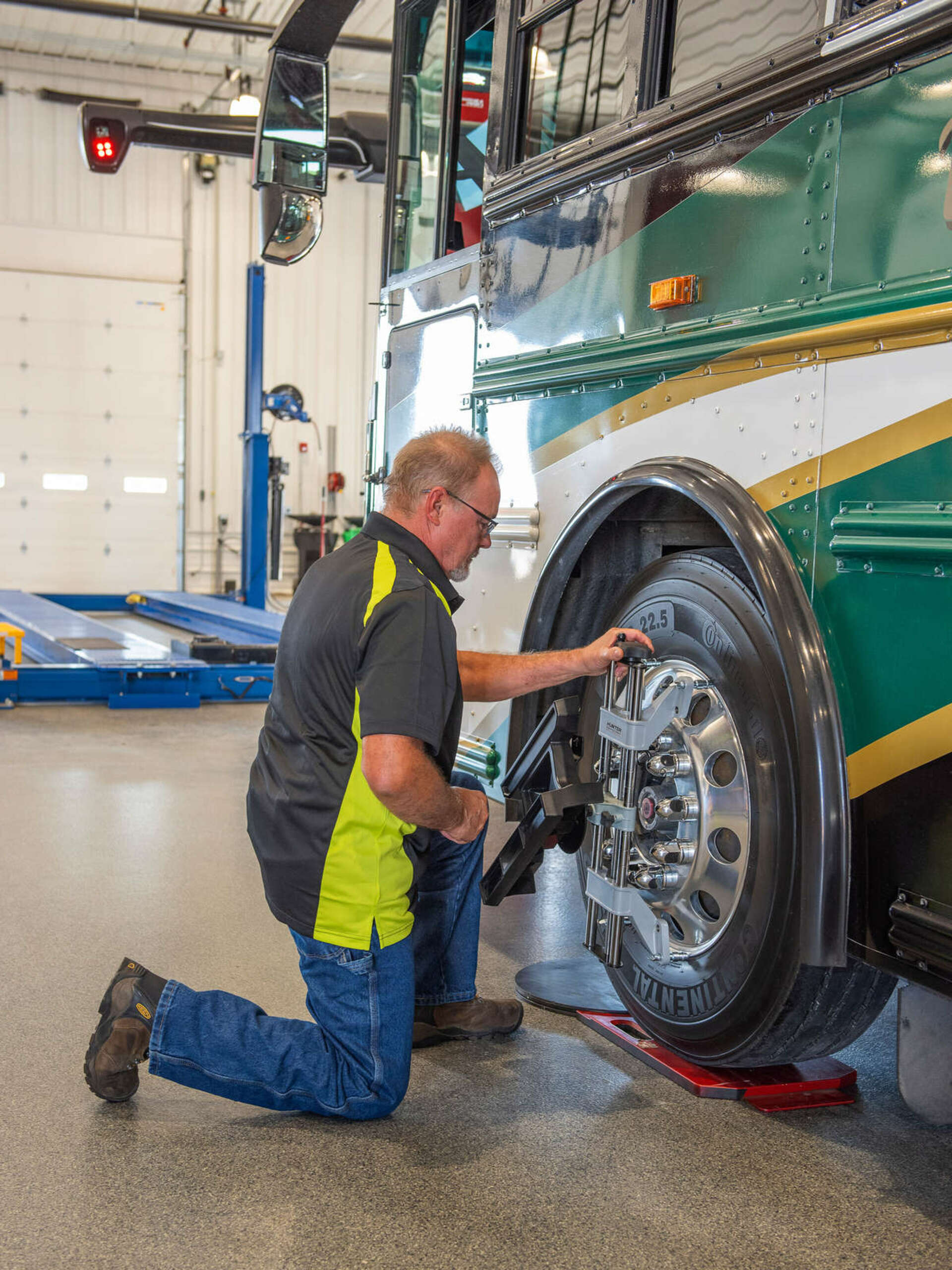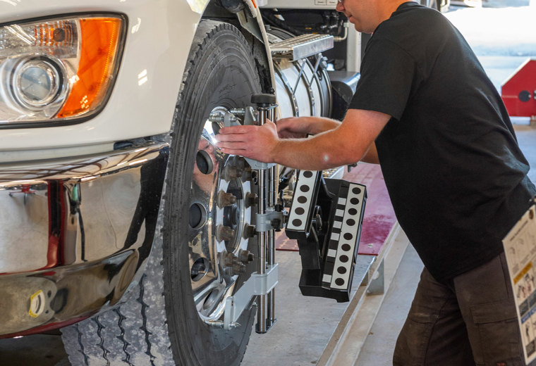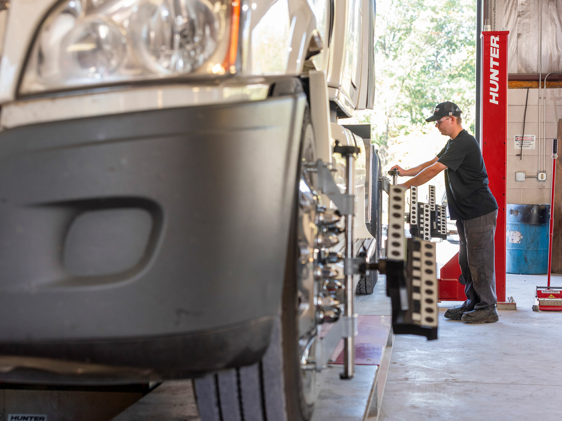 Rychlý a vysoce výkonný stroj pro měření geometrie s patentovanou kamerovou technologií Hunter určený pro těžké nákladní vozy, autobusy a středně těžká užitková vozidla a vozové parky.