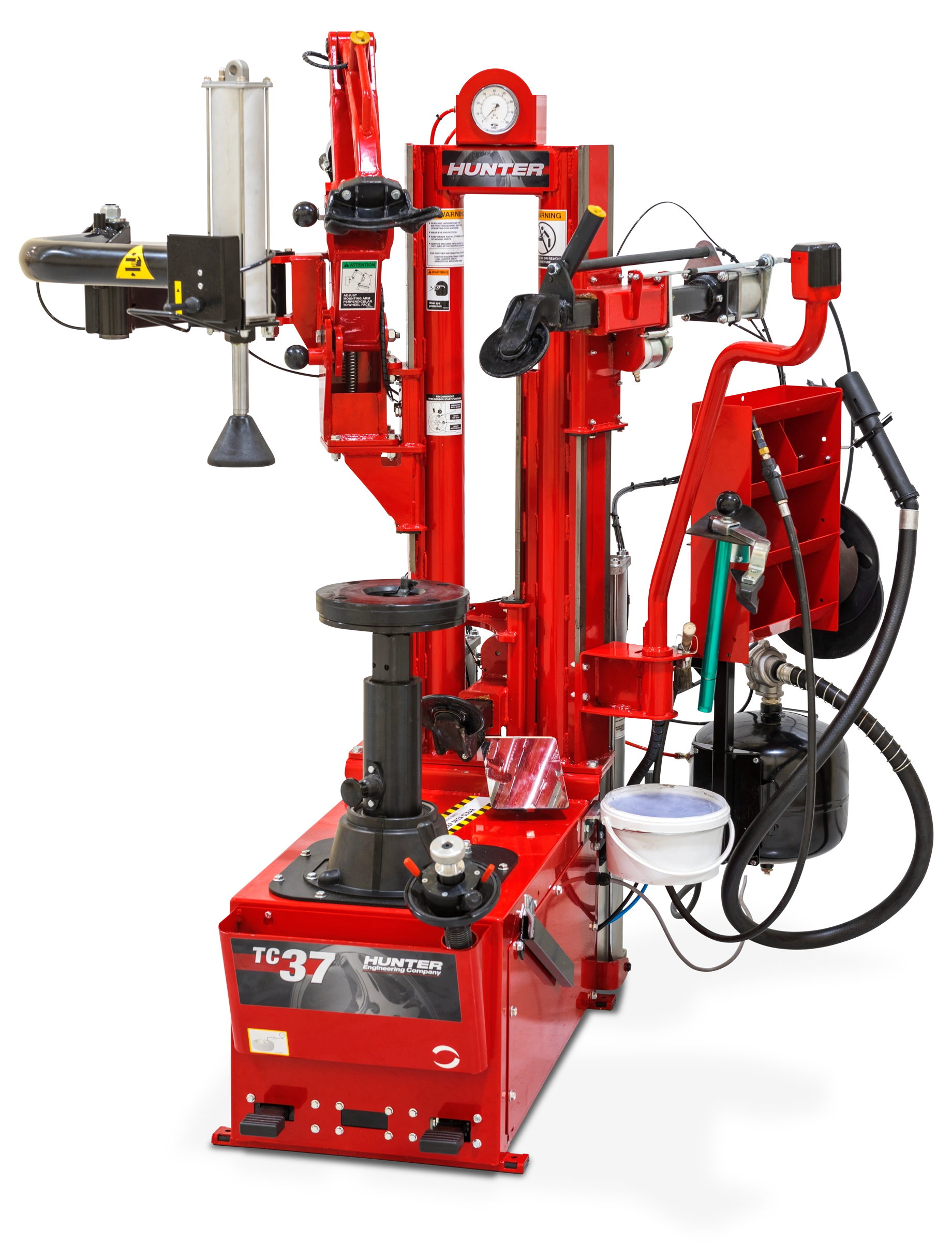 Revoluční plně automatický "Center-Clamp" montážní stroj, navržen a vyroben v USA, poskytuje plně variabilní hydraulické ovládání a jedinečné funkce, které umožňují bezpečný a snadný proces montáže pneumatik.