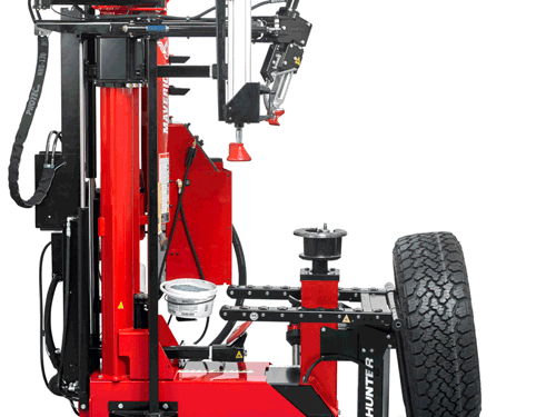 Revoluční plně automatický "Center-Clamp" montážní stroj, navržen a vyroben v USA, poskytuje plně variabilní hydraulické ovládání a jedinečné funkce, které umožňují bezpečný a snadný proces montáže pneumatik.