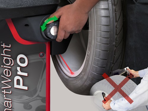 Automatické měření šířky kola při sklápění krytu. (Volitelné u modelů SmartWeight® Pro)