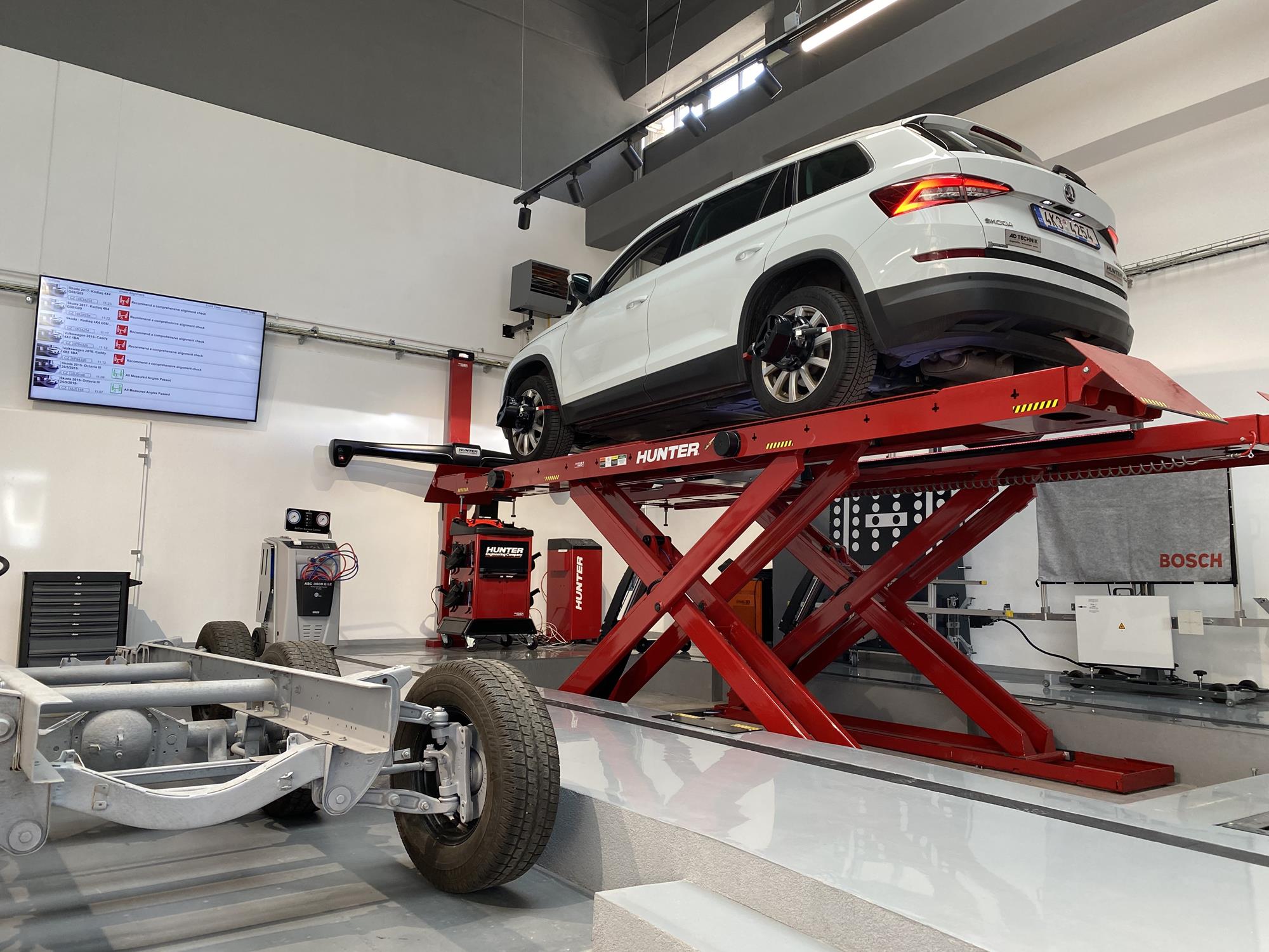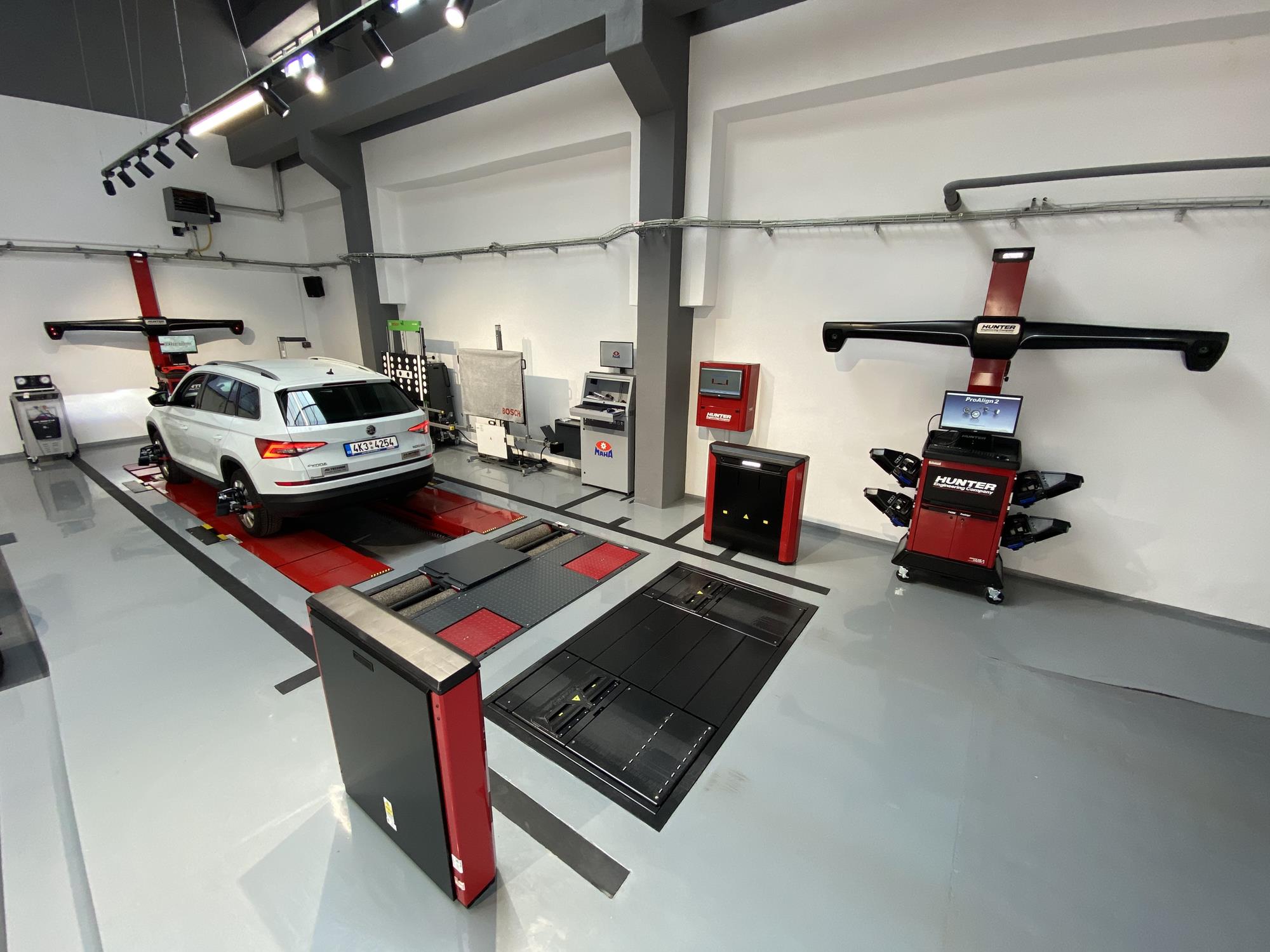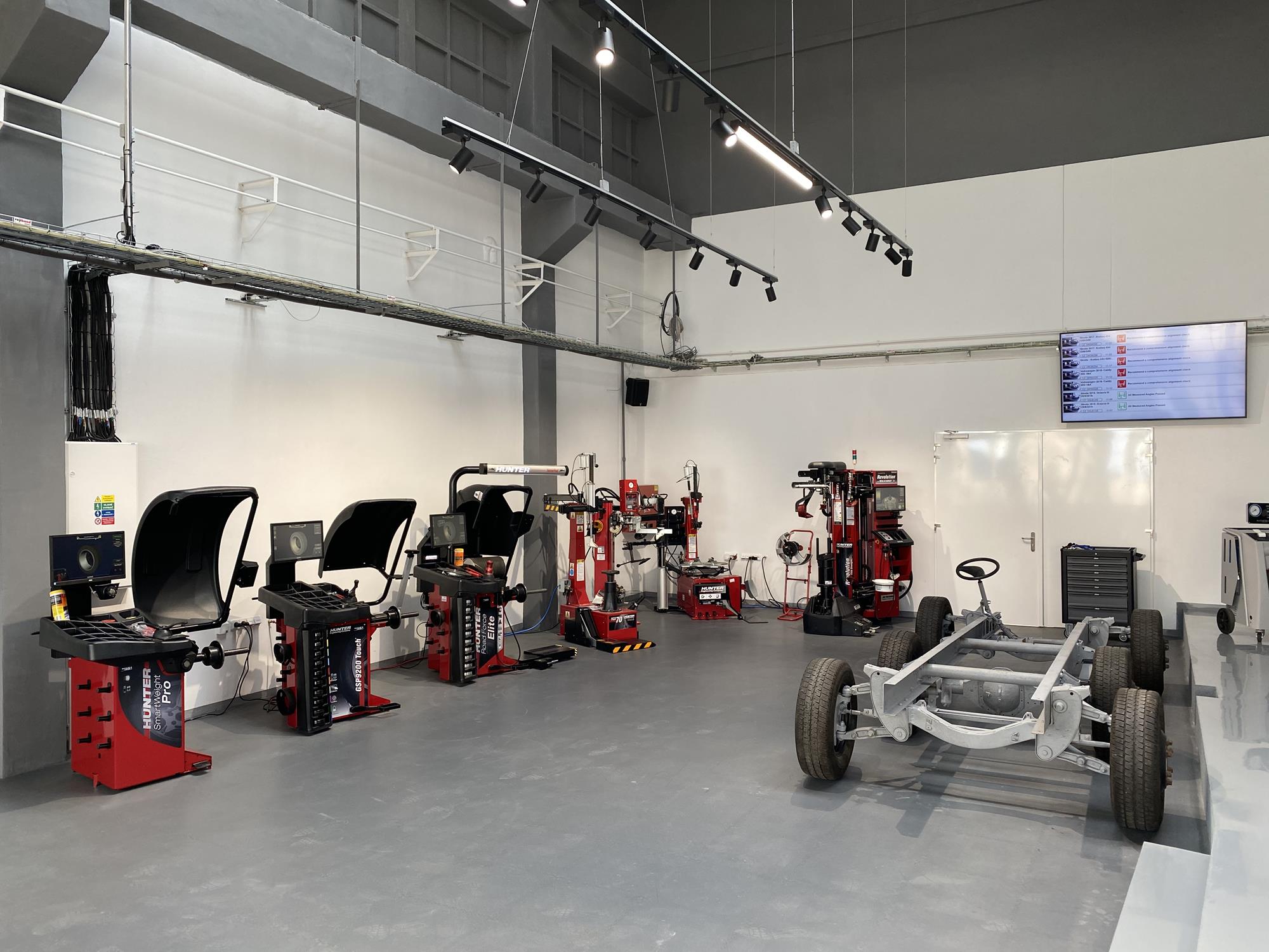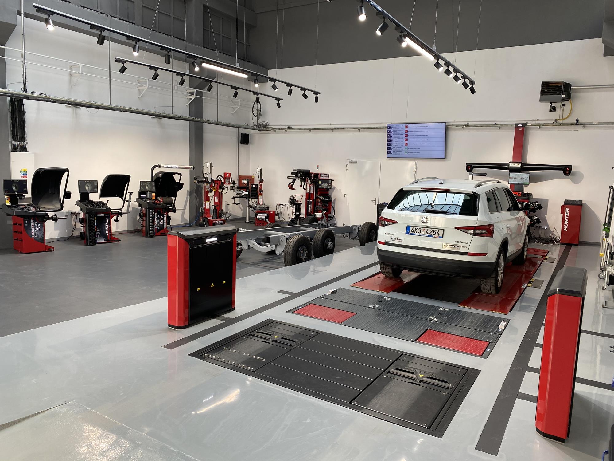 Vybavení zahrnuje Hunter HawkEye Elite®, zvedák Hunter RX a průjezdovou inspekční linku Hunter Quick Check® Drive včetně 3D skeneru dezénu pneumatik Hunter Quick Tread®.